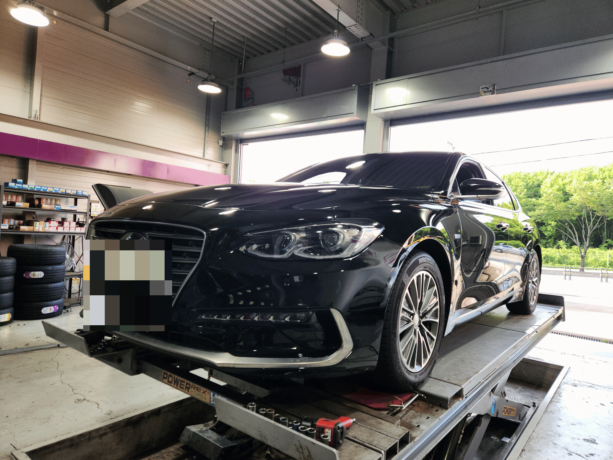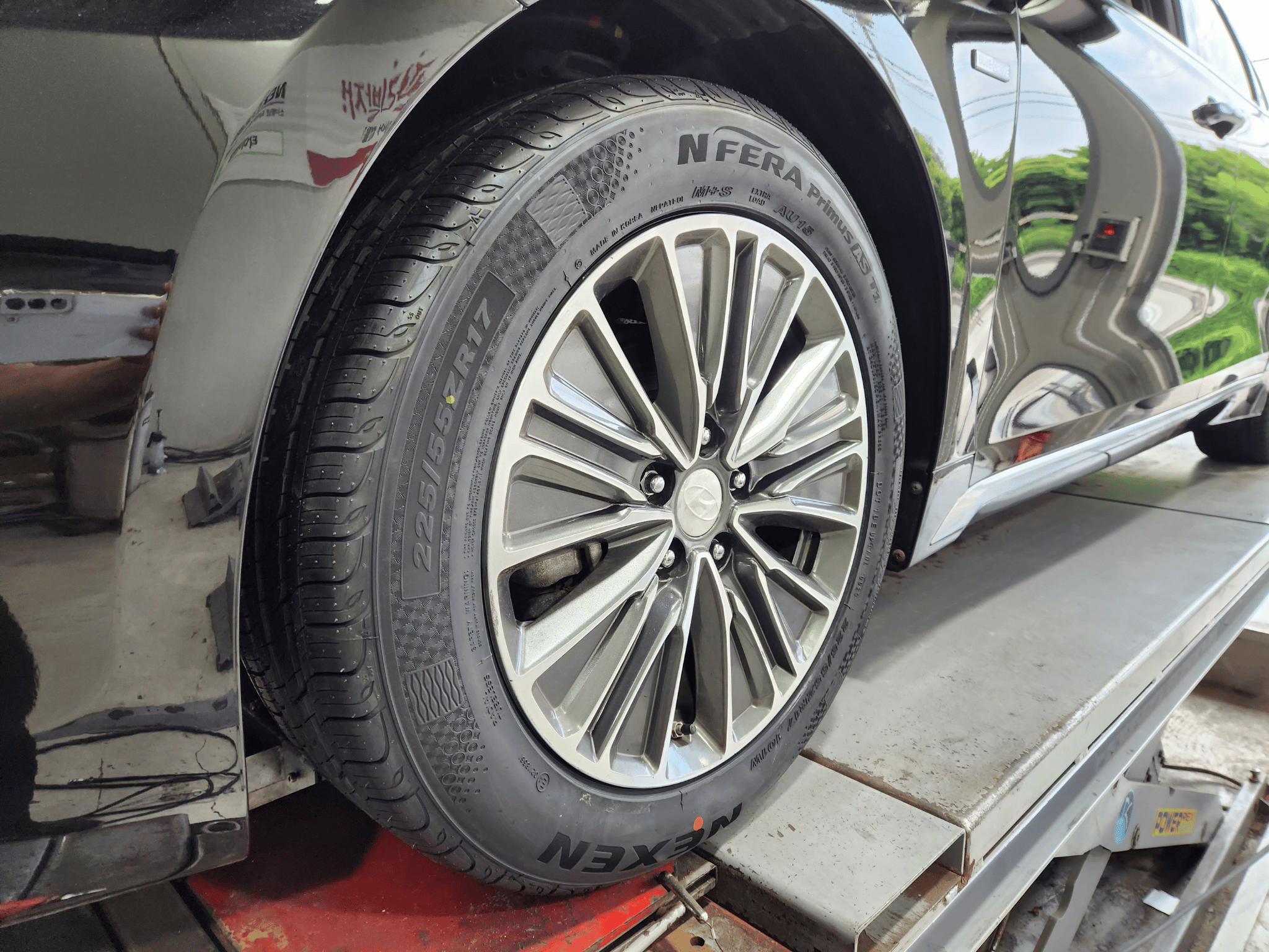 전날 마치기 직전에 작업한 그랜져 IG 하이브리드입니다. 타이어 규격은 225/55 R17이고요. 타이어는 넥센타이어 N'FERA AST1으로 교환을 하였습니다. AST1은 온라인에서는 구입할 수 없는 제품으로 타이어테크 전용으로 취급되고 있는 타이어인데요. 초기에 나왔을 때는 포지션이 컴포트 상위라인이라 가격대도 좀 있어서 판매하기가 좀 애매했는데. 현재 약간의 조정으로 어느 정도 판매가 되고 있는 타이어입니다.