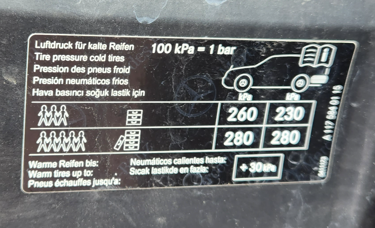 벤츠 CLA200의 표준공기압 (100 kPa=1 bar)