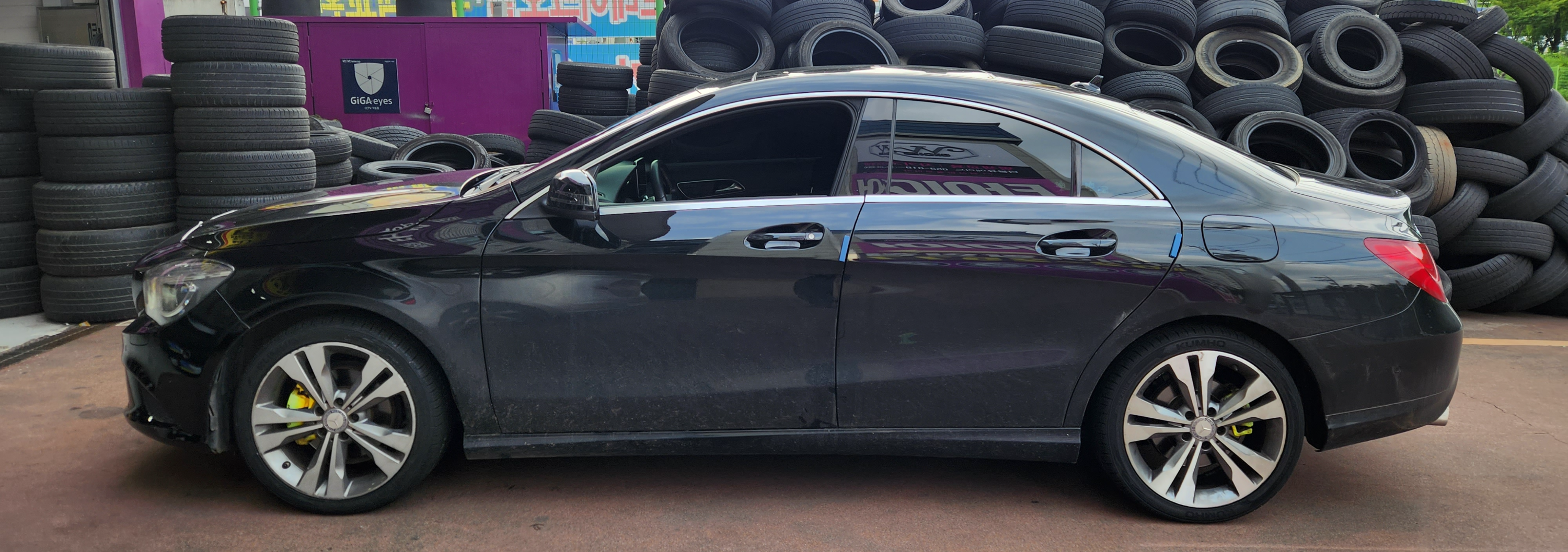 벤츠 CLA200입니다. 타이어파스로 인해 타이어 경고등 점등되어서, 견인되어 입고되었습니다.