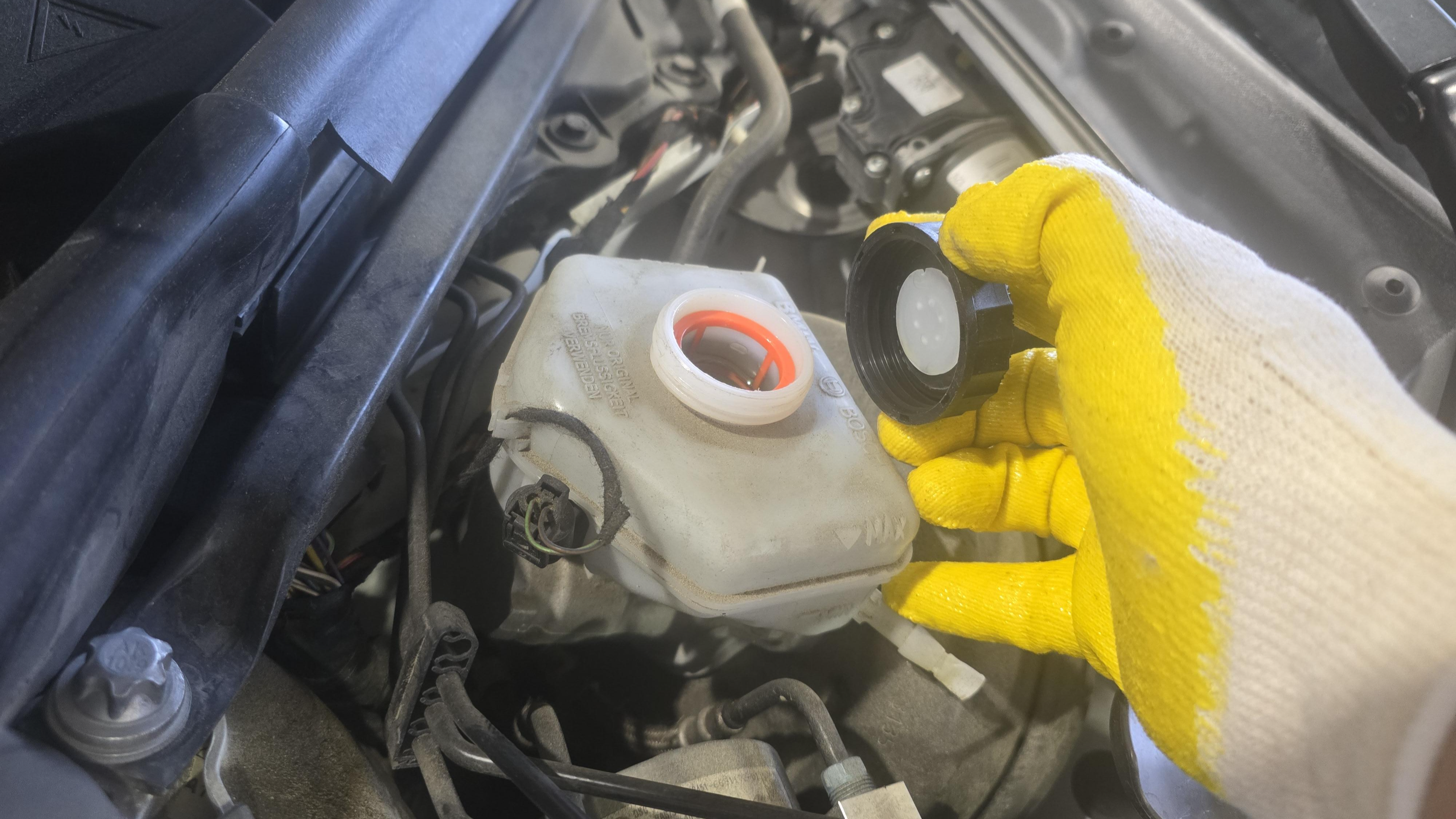며칠 전 브레이크액을 교환했는데 이번에 패드 교환하면서 넘칠까 봐 리저버 캡을 열어 둡니다.