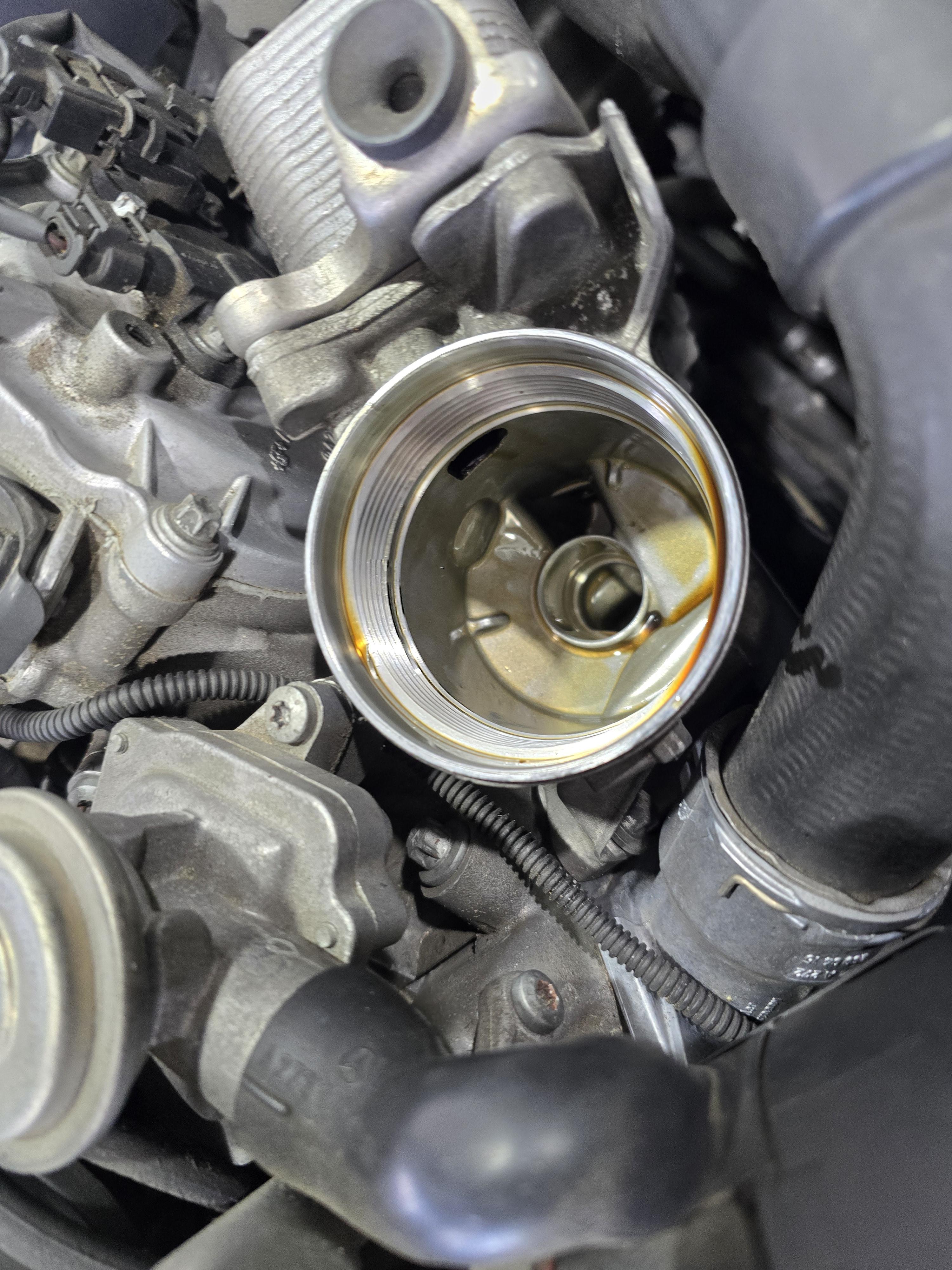 필터와 오일 주입구가 보입니다.