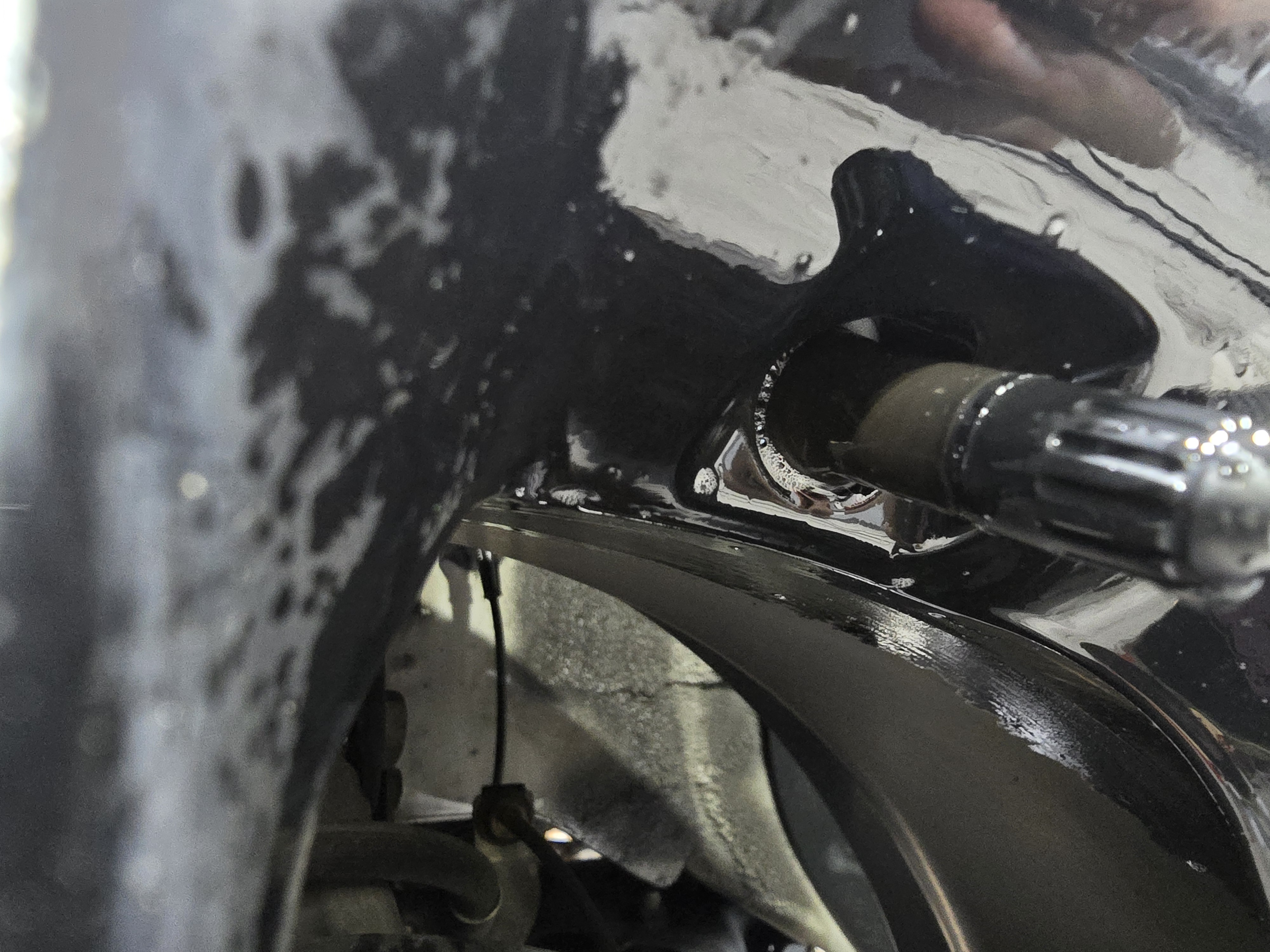 이런 경우 휠이나 밸브에서 공기가 새어나올 수 있는데, 연식이 휠에서 공기가 새지는 않을 것 같아 밸브에 거품을 뿌려보았습니다.