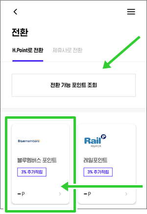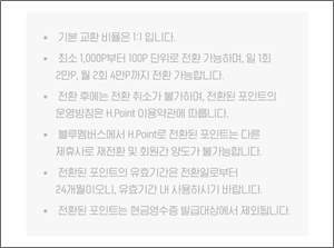 블루멤버스 포인트 → H포인트 전환 비율과 한도