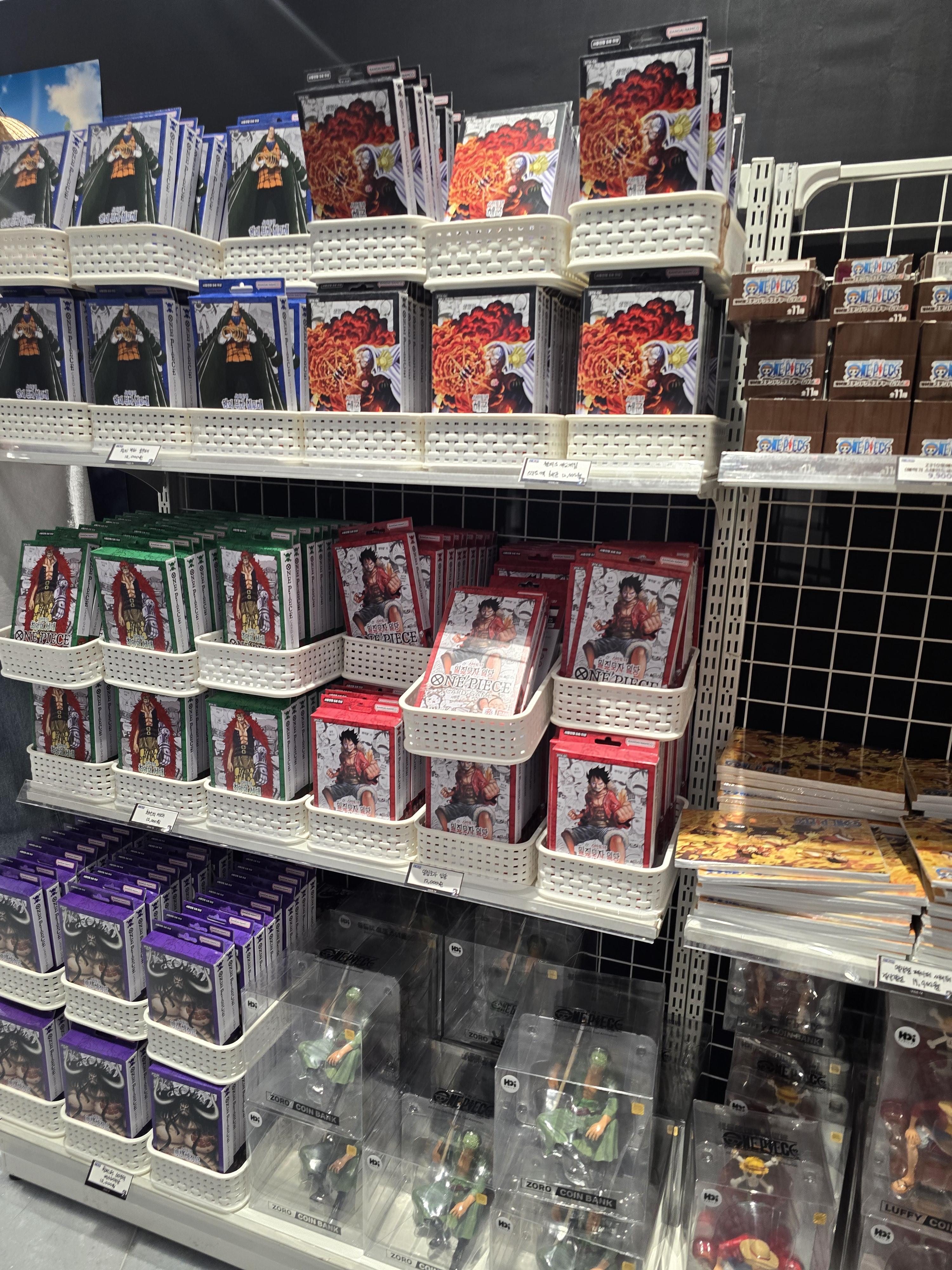 이렇게 인형부터 시작해서 정말 다양한 굿즈들이 있는데. 조로 인형 뒤에 세 자루의 검이 눈에 띕니다.