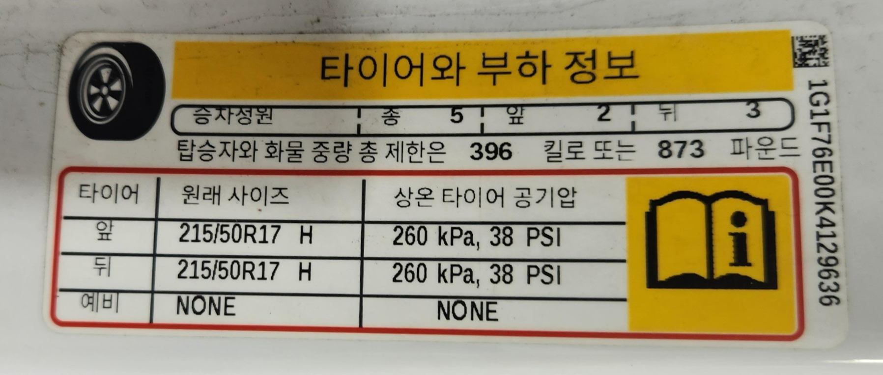 쉐보레 볼트(2019) 타이어 / 공기압 / 스페어 / ta21