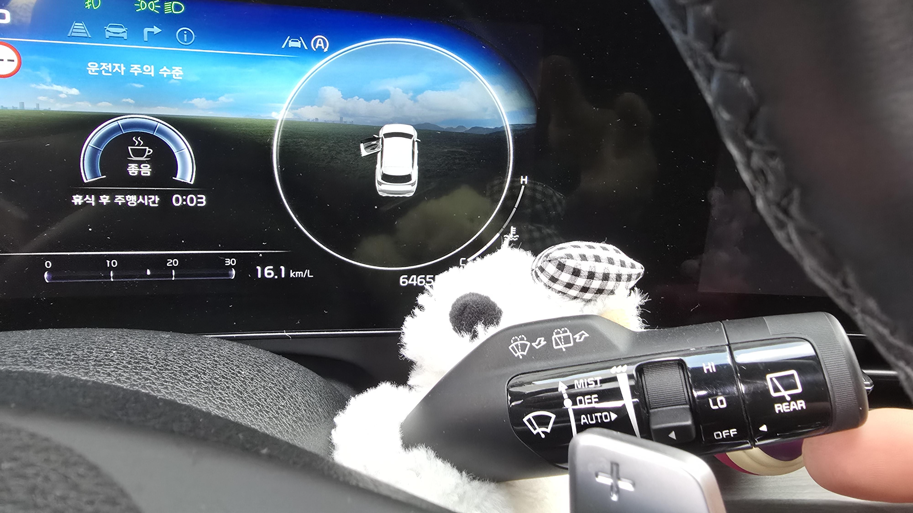 방법은 시동을 걸었다가 끄고 바로 핸들 우측 와이퍼 스위치를 위로 올려준 상태로 몇 초 기다리면 교환 모드로 들어가게 됩니다.