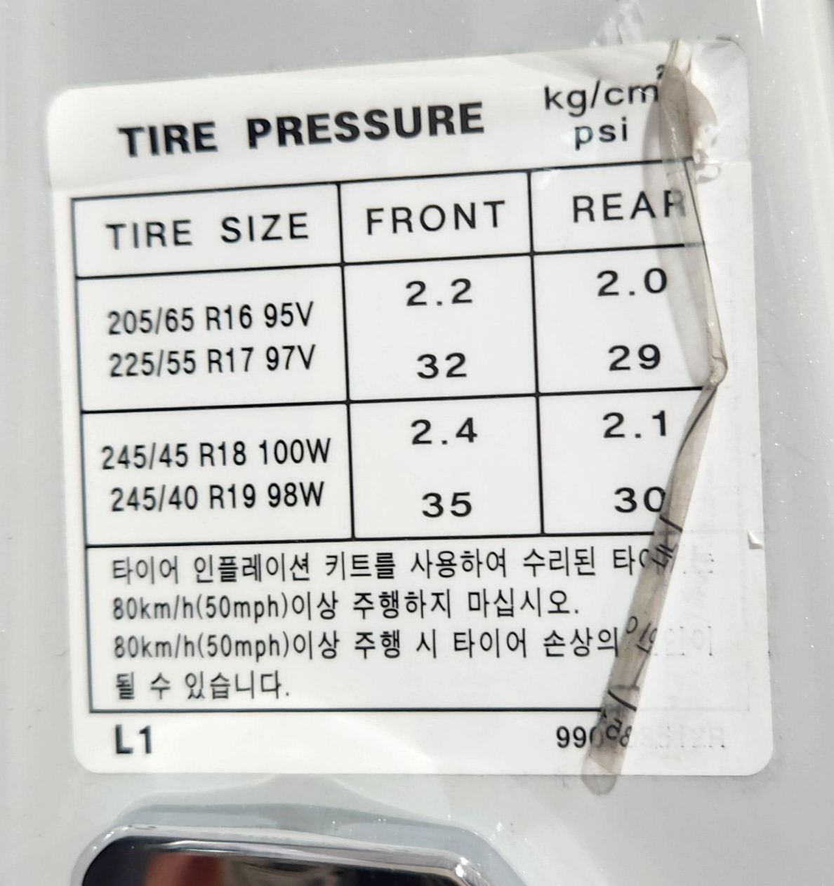 SM6 (2017)의 적정공기압은