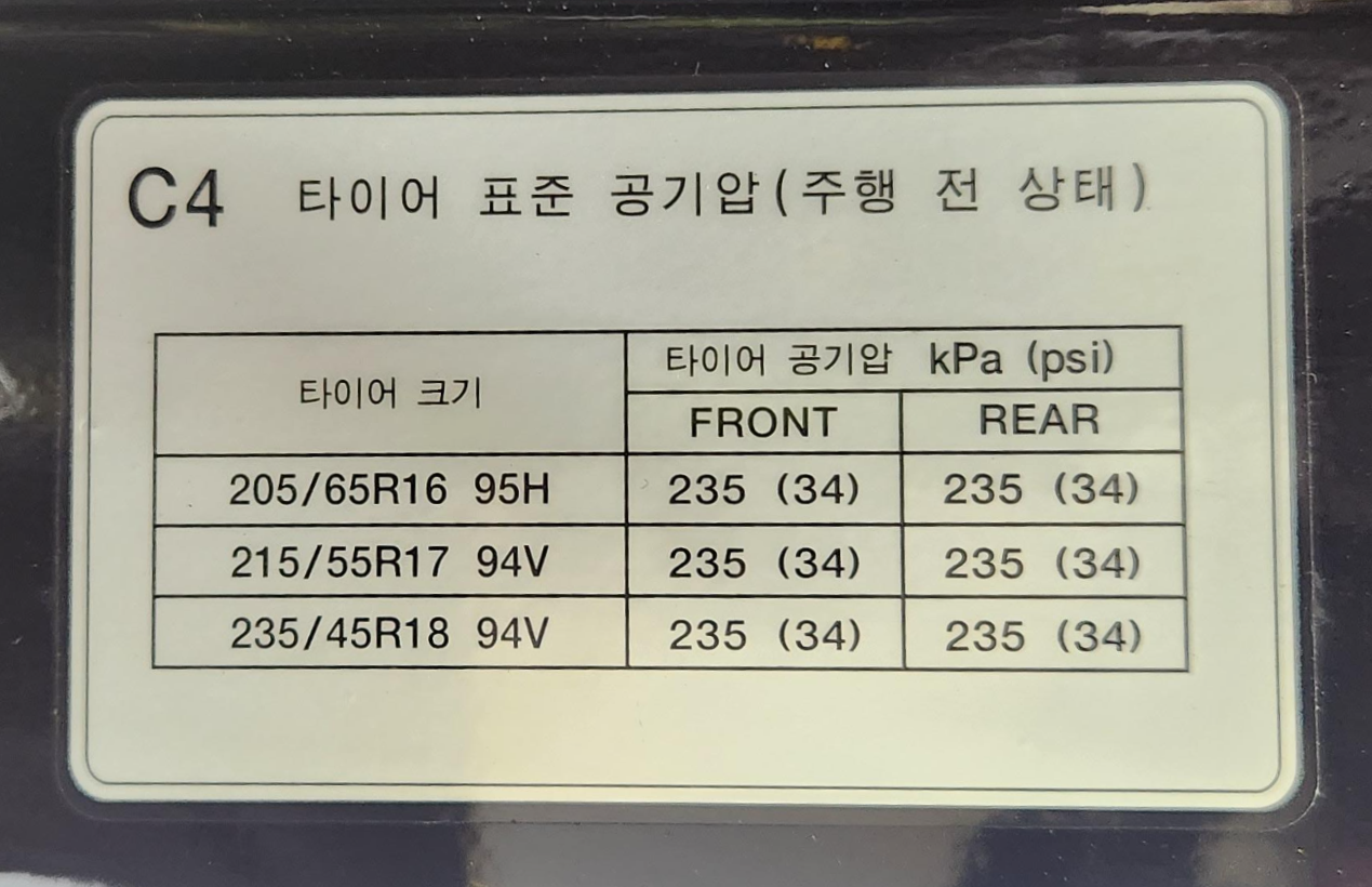 | 스팅어 (2018) 타이어 교환 AU7 / 타이어 적정 공기압 / 타이어 렌탈 파손보증 / 엔진오일량 몇 리터? / 출고타이어 규격 (0) | 2023.04.05 |