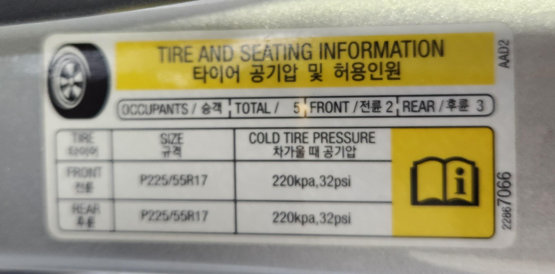 | 스팅어 (2018) 타이어 교환 AU7 / 타이어 적정 공기압 / 타이어 렌탈 파손보증 / 엔진오일량 몇 리터? / 출고타이어 규격 (0) | 2023.04.05 |