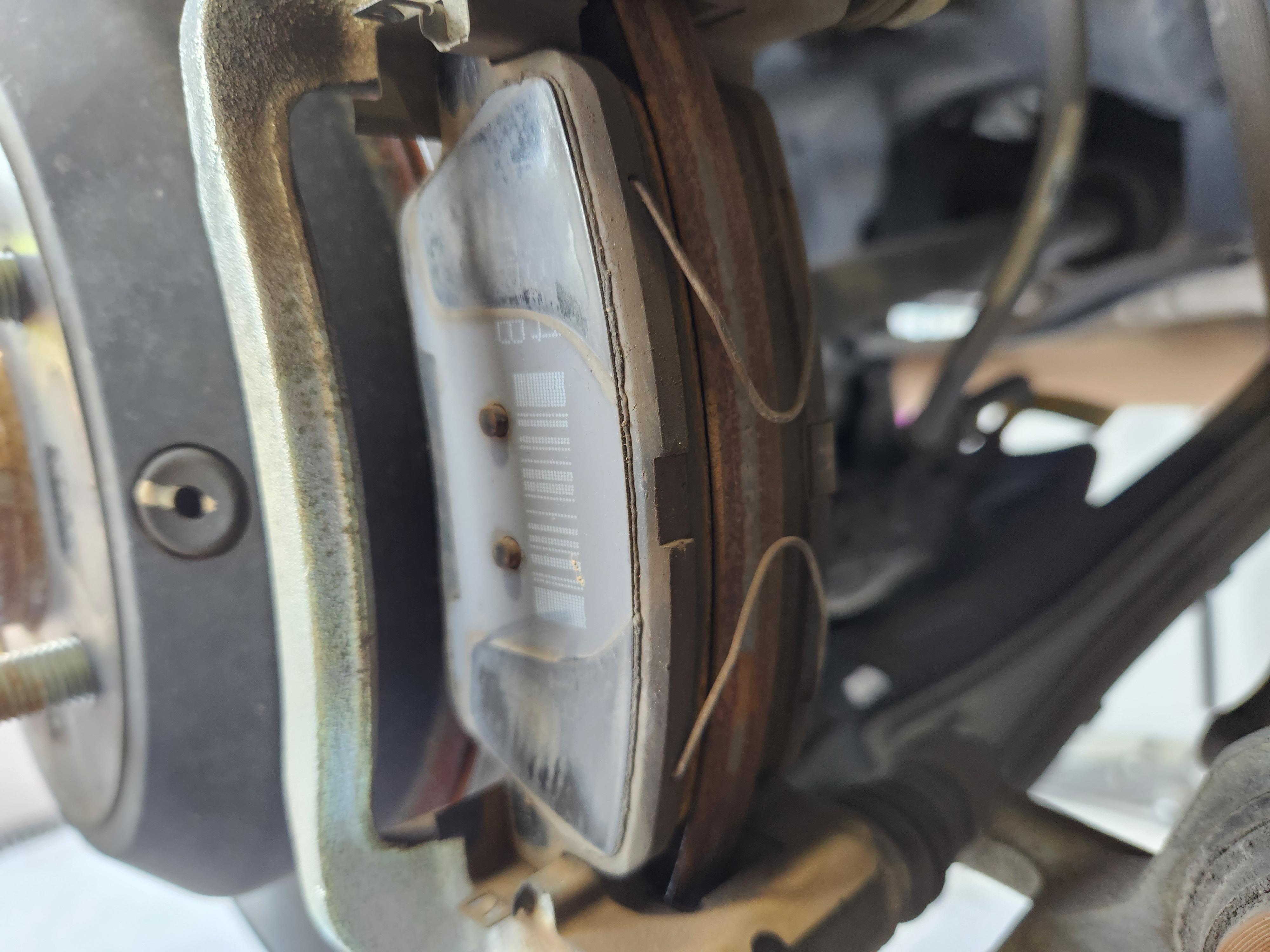 작업하면서 앞쪽 브레이크 패드도 확인해 보니 상태가 많이 안 좋더라고요.
