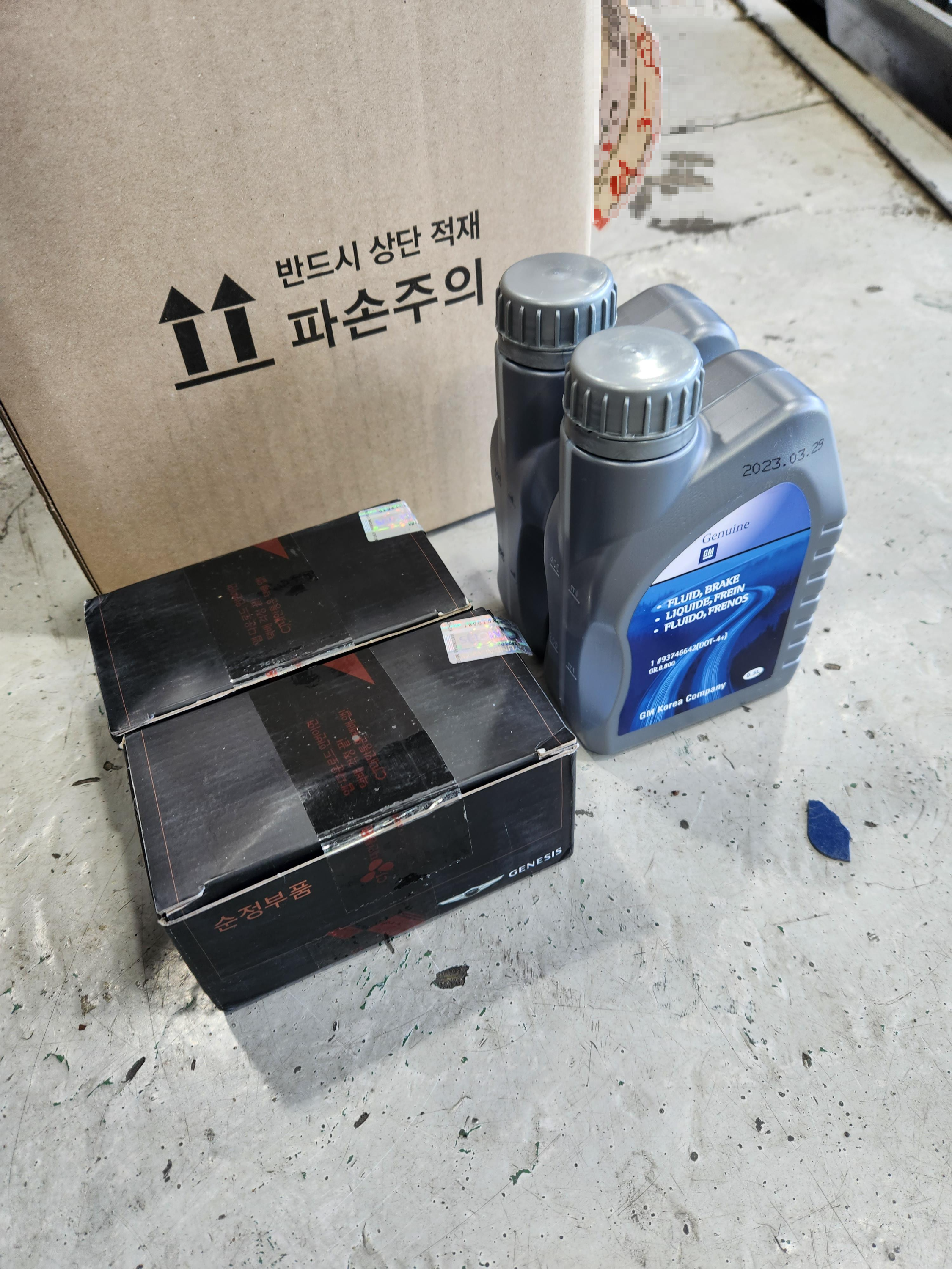 브레이크 오일+뒤 브레이크 패드를 교환했어요.