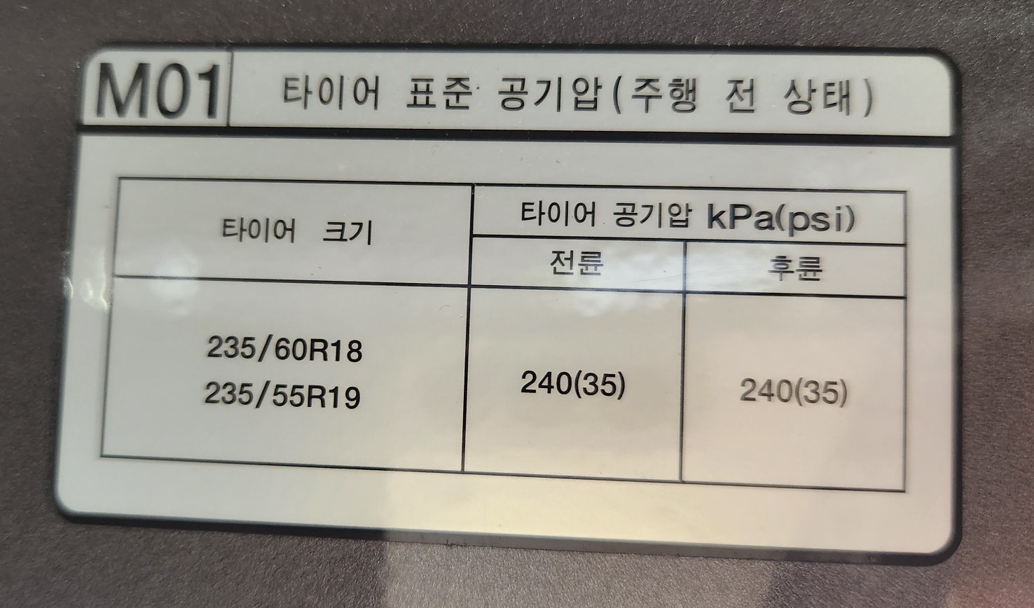표준 적정공기압은