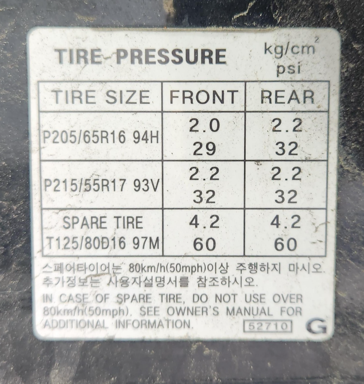 | 제네시스(2011) 타이어 적정 공기압, 출고타이어 규격, 245/45R18 엔페라 슈프림 정보 (0) | 2023.05.20 |